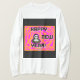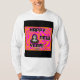 Vocês podem admirar o desenho do meu Ano Novo de uma alienígena com designs cor-de-laranja e rosa, o texto diz, "Feliz ano novo!" Eu chamo este desenho, "Vontades de Ano Novo Grays", adicionado à camisa de manga longa deste homem para desejar a alguém um, "Feliz ano novo".
