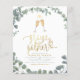 O design moderno apresenta uma coroa de folhas de eucalipto pintadas à mão com aquarelas, uma ilustração de dois copos de champanhe, "pastar & reunir" em letras falsas de ouro, e detalhes de seu partido na tipografia moderna. Clique em "Personalizar" para alterar o texto. Um design versátil, perfeito para primavera, verão, outono ou eventos de inverno. Para edições mais avançadas, use o link "personalizar mais" para acessar a ferramenta Zazzle design. Como parte da seleção orçamentária no Zazzle, esta folha não é um tamanho de convite padrão ou qualidade de papel. Se quiser que este design num cartão de convite o encontre na nossa loja ou utilize o Zazzle Make Machine para o transferir para o produto da sua escolha. Se precisar de alguma ajuda, gostaria de combinar itens ou ter uma pergunta relacionada a design, sinta-se à vontade para entrar em contato comigo!
