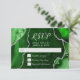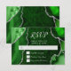 Complete your event stationery with this elegant RSVP card featuring a green agate marble design accented with luxurious silver details. The bold geode-inspired background creates a dramatic and sophisticated look, perfect for weddings, birthdays, formal celebrations, or glamorous evening events. Designed with clear response sections, this RSVP card allows guests to easily confirm attendance, indicate number attending, and respond with acceptance or regrets. The clean, modern typography keeps details easy to read while complementing the rich agate texture. Easily personalize all text to suit your event and coordinate beautifully with matching stationery.