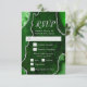 Complete your event stationery with this elegant RSVP card featuring a green agate marble design accented with luxurious silver details. The bold geode-inspired background creates a dramatic and sophisticated look, perfect for weddings, birthdays, formal celebrations, or glamorous evening events. This RSVP card includes dedicated sections for guest responses, number attending, and meal selection, making it easy to gather all the details for your event. The clean, modern typography keeps information clear and easy to read while complementing the rich agate texture. Easily personalize all text to suit your event and coordinate with matching stationery.
