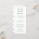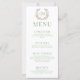 Melhore o encanto da sua recepção de casamento com esses cartões de cardápio florais sofisticados e na moda. Decorado com delicada coroa verde e cor-de-rosa e coroa floral, noiva e monograma do noivo e mostrando um padrão floral eterno no fundo.