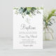 Batismo Convite Belo Verde Moldura de Aquarela em fundo branco torna este convite espantoso! Adicione os detalhes do evento usando o formulário modelo. O texto adicional pode ser adicionado à parte traseira, se necessário, usando o recurso Personalizar.