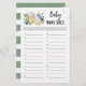 Adquira este cartão editável e desfrute de um jogo de corrida de nomes de bebês de Chá de fraldas de alta qualidade para o seu evento! Chá de fraldas, Atividades de Revolução de Gênero! Sage Green Brewery Unisex design