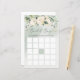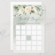Folhagem Boho Greenery com eucalipto e rosas brancas, bingo floral para festa de chá de panela com fundo de aquarela