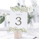 Cartões de números de tabela botânica, elegantes, apresentam folhas verdes de cor d'água no topo e no fundo com o número de sua mesa no centro em verde-oliva rico. Design repete-se no lado oposto. Coordena-se com a nossa suíte de convite de casamento botânico.