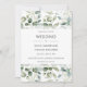 Convites de casamento à floresta ao estilo escandinavo na moda. Folhas de eucalipto foliar com folhas verdes, em fundo branco limpo.