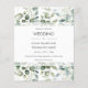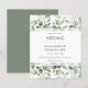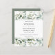 Convites de casamento de baratos de floresta ao estilo escandinavo na moda. Folhas de eucalipto foliar com folhas verdes, em fundo branco limpo. Estes convites serão impressos em papel como uma opção de barato. Visite minha loja para ver este design como um convite para cartas.