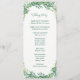 Estes programas de casamento apresentam folhas verdes e folhagem. A frente do cartão tem a cerimônia e a parte traseira do cartão lista a festa noiva. Estes programas de casamento fazem parte de uma coleção que inclui uma gama de cheios de artigos de papelaria e de noivas. Visite as páginas de coleta em nossa loja para ver o intervalo de cheios.