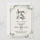 Celebre o seu amor por este moderno Greenery Salve a Data de Convite, ideal para elopeio e microcasamentos. Projetado com uma esmagadora folhagem de aquarela e tipografia de na moda, é perfeito para casais inspirados na natureza. Facilmente personalizável para seu lançamento especial.