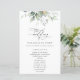 Adicione um toque pessoal à sua celebração de casamento com estes itens de na moda e festa memoráveis! Design apresenta folhas de eucalipto e verde em fundo branco.