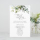 Adicione um toque pessoal à sua celebração de casamento com estes itens de na moda e festa memoráveis! Design apresenta folhas de eucalipto e verde em fundo branco.