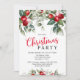 Convite de festas de Natal Greenery & Red Berries. Este convite elegante apresenta um arranjo exuberante de verde e bagas vermelhas vibrantes, capturando o espírito festivo da estação. O clássico design combina elementos naturais com um toque de alegria de férias, fazer-o perfeito para convidar convidados para uma sofisticada festa de Natal.