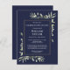 Um elegante cartão postal botânico personalizado com cor d'água celebrando o convite para lembrança da vida com folhagem botânica verde de cor d'água sobre fundo azul marinho. Projetado por Thisnotme©