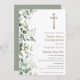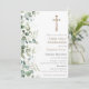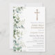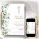 Procurando a maneira perfeita de convidar sua família e amigos para a Primeira Comunhão do seu filho? Não olhe mais do que nosso habitual convite da Primeira Comunhão! Apresentando um crucifixo de tom dourado ornamentado e uma exuberante fronteira verde de eucalipto em fundo branco, este convite certamente impressionará seus convidados e dará o tom para uma bela e significativa celebração. Este convite também está disponível como um download digital para que você possa enviá-lo em breve. Com nossa ferramenta de personalização fácil de usar, você pode personalizar seus convites com o nome do filho, a data e a hora do evento e quaisquer outros detalhes importantes que você queira incluir.