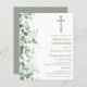Procurando a maneira perfeita de convidar sua família e amigos para a Primeira Comunhão do seu filho? Não olhe mais do que o nosso habitual convite para o jornal da Primeira Comunhão! Apresentando um crucifixo de tom dourado ornamentado e uma exuberante fronteira verde de eucalipto em fundo branco, este convite certamente impressionará seus convidados e dará o tom para uma bela e significativa celebração. Essa opção de papel de barato facilita o pedido de tantos convites quantos você precisar, sem quebrar o banco. E com a nossa ferramenta de personalização fácil de usar, você pode personalizar seus convites com o nome do seu filho, a data e hora do evento e quaisquer outros detalhes importantes que você queira incluir.