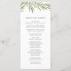 O nosso programa de casamento botânico apresenta os detalhes da sua cerimônia em verde-oliva rico, acentuado no topo com um gracioso som de folhas de aquarela verde. O verso lista os membros da sua festa de casamento com campos de texto facilmente editáveis. Coordena-se com a nossa coleção de convites de casamento botânico. Use os campos modelo para adicionar informações sobre sua cerimônia e noivado e clique em "Personalizar" para reposicionar elementos, se necessário. Precisa de ajuda? Entre em contato comigo através do link "Perguntar a este Designer" nesta página.