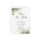 Greenery Salve O Cartão De Data. Este na moda e Chá de panela elegante apresenta uma linda cor d'água pintada manualmente Greenery. Localizar itens correspondentes na Coleção Floral Eucalyptus Greenery.