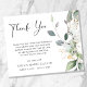 Um elegante e acessível memorial ou cartões de agradecimentos funerário. Este design mínimo apresenta "Obrigado" numa escrita contemporânea, uma bela folhagem de eucalipto verde e uma aquarela de buquê floral branca e o seu obrigado que você envia e ama o nome de alguém na simples tipografia moderna.