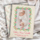 Este charmoso anúncio de natal de feriado apresenta uma design de aquarela de folhas verdes e bagas vermelhas em volta de sua foto favorita de bebê em um simples fundo de listras de marfim pálido. *ADICIONE mais fotos ou texto no verso com o link Personalizar mais. Selecione Matte para o papel mais pesado.