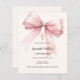 Um bege macio, fundo colorido creme, decorado com um arco grande cor-de-rosa e uma cruz ouro. Personalize e adicione um nome e detalhes. 1 folha = 1 convite impresso de borda a borda.
