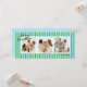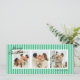 Pequenas faixas verticais verdes e azuis aqua dão a este cartão de fotos uma vibração moderna e chic com fontes clássicas e uma longa mensagem personalizada para amigos e familiares.