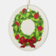 Grinalda com enfeites de natal vermelhos do arco