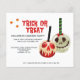 Truque de Halloween do BUDGET ou o Caveira de Doce do Candy com doce tema Padrão e design de texto ousado - apresentava dois paus de pop um crânio e outro um fantasma - uma fantasia divertida, tema todo metade de cada festa convidada de Ricaso