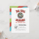 Envie um convite de Natal retrógrado e colorido com uma bola brilhante e groovy e um plano de fundo com verificação na página de trás. Personalize o texto com seus próprios detalhes para a parte selecionando a opção personalizar o botão.