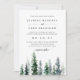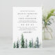 Uma queda elegante ou um convite de casamento no inverno apresenta uma cópia de árvores altas de pinheiros com aquarela em tons de idade cinza e verde caçador. Personalize com os detalhes do seu casamento em letras suaves de preto. Uma bela escolha para o outono ou casamentos no inverno elegantes em zonas montanhosas ou florestais.