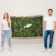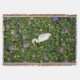 Coloque um cobertor com um lago verde de lírio com uma grua branca no centro.