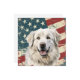 A watercolor portrait of a beautiful white Great Pyrenees Dog is placed against a grunge background of the USA flag. The back of this all occasion flat card has a text field for you to customize.