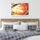 Flame detalhado, caminhão clássico personalizado amarelo em uma canvas esticada.