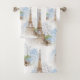 Uma imagem bonita da torre Eiffel da exposição de Paris em 1889 junto com hydrangeas azuis e brancos bonitos do vintage no branco faz um grupo bonito de toalha de banho, ou apenas a toalha de mão se você prefere. Aperfeiçoe para o amante de Paris ou de coisas bonitas. Os artigos de harmonização e o outro design de Paris do vintage estão disponíveis em minha loja de Zazzle.