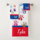 A toalha colorida dos handprints ajustada aperfeiçoa para o banheiro de uma criança. Cores vibrantes brilhantes. Este grupo pode ser personalizado com nome de uma criança.