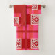 Grupo vermelho de toalha de banho do azulejo. Esta é uma toalha de banho bonita ajustada com acento vermelho e cor-de-rosa.