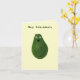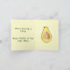 Engraçado avocado guacamole modelo de anúncio de gravidez apresentando um abacate com um rosto na frente e uma vista de corte mostrando o abacate como um bebê dormindo na dentro. Você pode personalizar a cor de fundo. Todo o texto pode ser personalizado e cada elemento gráfico está em uma camada separada que pode ser movida ou removida independentemente. O gráfico no verso pode ser facilmente substituído por sua própria imagem, como um ultrassom com este modelo.