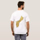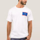 A frente desta camiseta tem uma pequena bandeira guamaniana com seu familiar motivo central em um fundo azul com borda vermelha, enquanto a parte de trás exibe um mapa de alivio de Guam. Disponível em t-shirts, camisas de suor, polos, capas compridas e muito mais.