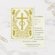 Um eterno de casamento católico, belamente, apresenta uma cruz dourada com bandas de casamento interligadas, enquadrada por grupos de uva e folhagem simbólica que representa a união frutífera do Santo Matrimônio. A frente desta design sagrada recorda a dignidade do sacramento, enquanto o inverso oferece uma reflexão e personalização louváveis com os nomes do casal e a data do casamento. Memória reverente das núpcias católicas, ideais para distribuir na missa nupcial ou como símbolo duradouro de graça sacramental. Perfeito para casais católicos tradicionais, preparação sacramental ou favores do dia do casamento.
