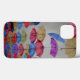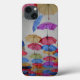 Guardas-chuvas coloridas sobre fundo texturizado