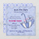 Doce bebê chá convidado com adorável ursinho azul cavalgando em um guarda-chuva, pontos grandes e outros toques especiais. Personalize com suas informações.