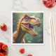 A imagem de um feroz Tyrannosaurus Rex cobre este guardanapo de papel.