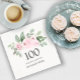 As rosas cor-de-rosa são aninhadas em folhas de eucalipto. 100, o nome do celebrante e 150 anos depois. Todo texto pode ser editado.
