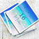 Uma cena de praia sedutora é o fundo desta design de aniversário da Festa de Praia dos Dezesseis. O azul oceânico e o céu são as principais cores. Todas as informações e a imagem são facilmente substituídas para seu próprio design personalizado.