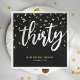 Os guardanapos modernos do aniversário de 30 anos, com um fundo preto na moda, o confete ouro, o título 'trinta' numa letra de texto branco, o ditado 'feliz aniversário', o seu nome e a data da celebração.