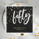Os modernos 50º guardanapos de festa de aniversário com fundo preto na moda, confetti de ouro, o título 'cinquenta' numa letra branca, o ditado 'feliz aniversário', o seu nome e a data da celebração.