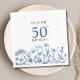 50º aniversário do guardanapo floral azul. Fácil de mudar o texto. Bonito cor de água azul de flor silvestre.