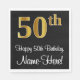 Este design de guardanapo de papel sofisticado, luxuoso e temático de na moda de aniversário apresenta um grande número ordinal "50º" com um padrão de gradiente tipo ouro imitação/falsa, além da mensagem de saudação de aniversário "Feliz 50º aniversário" e um nome personalizável em uma fonte estilo script. O fundo é preto colorido. Os sofisticados guardanapos de papel como este podem ser usados para organizar uma festa para alguém em comemoração do seu 50º aniversário. [~Z0000516]