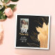 50 e Fabulosa Folhagem Dourada 50º Aniversário Foto Napkins. 50 e texto fabuloso em um roteiro branco com um nome e uma folhagem de ouro em um fundo preto. Personalize com sua foto, seu nome e a idade.