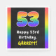 This cheerful and fun birthday paper napkin design features a large number “53“ with a colorful rainbow spectrum inspired gradient pattern, along with the message “Happy 53rd Birthday,”, and a personalized recipient name. Paper napkins like these might be used at a birthday party held in celebration of somebody’s fifty third birthday. [~Z0000629]