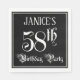 Este elegante e elaborado design de guardanapo de papel com tema de aniversário apresenta um nome personalizado e a mensagem "58ª Festa de aniversário". O grande número "58º" e as palavras "Festa de aniversário" estão em texto no estilo de script do ornamentado, e o plano de fundo é preto por padrão (embora possa ser personalizado). Ornamentado, guardanapos de papel opulentes como este podem ser usados numa festa/festa de aniversário para homenagear o cinquenta oitavo aniversário de alguém. [~Z0000563]